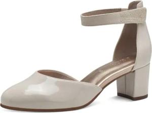 Damen Pumps mit Riemen mit Glitzersteinen Vegan, Beige (Beige Patent), 37 EU
