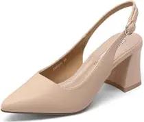 Damen Pumps mit geschlossenen Zehen Elegante Schuhe mit niedrigem Absatz ZM9639, Nude, 36 EU