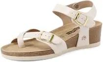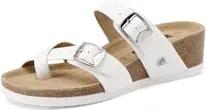 Flip-Flops mit Keilabsatz, Hausschuhe mit doppelter Schnalle, lässig, für Damen X32-206, Weiß, 37 EU