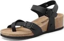 Flip-Flops mit Keilabsatz Bequeme Sandalen mit Riemen für Damen X32-205, Schwarz , 36 EU