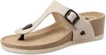 Flip-Flops mit Keilabsatz Bequeme Sandalen mit Riemen für Damen X32-205, beige, 36 EU