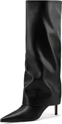 Hohe Stiefel mit breitem Schaft mit Stiletto-Absatz für Damen K4076, Schwarz Pu, 36 EU