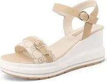 Keilabsatz Platform Sandalen mit Riemen Casual Damen X32-219, beige, 39 EU