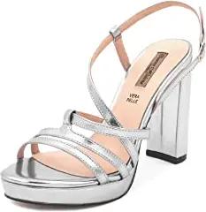 S2809 Damen-Sandalen mit hohem Absatz, glänzend, offen, silber / schwarz, 39 EU