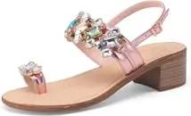 Sandalen Schmuck Flip-Flops mit Absatz Damen Y6022, Rosa, 35 EU