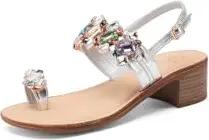 Sandalen Schmuck Flip-Flops mit Absatz Damen Y6022, silber / schwarz, 37 EU