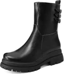 Stiefeletten mit Schnallen Stiefel Damen X33-98, Schwarz Pu, 41 EU
