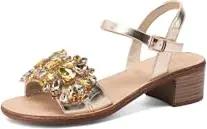 Y6023 Damen-Sandalen mit Strass und niedrigem Absatz, gold, 37 EU