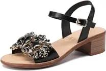 Y6023 Damen-Sandalen mit Strass und niedrigem Absatz, Schwarz , 36 EU