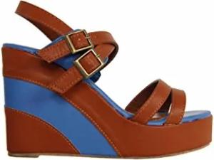 1810 Himmelblau Multiavellana Sandalen für Damen aus Leder mittlerer Keilabsatz mit Gummibändern, Hellblau Multiavellana, 39 EU