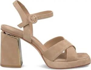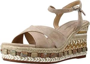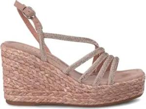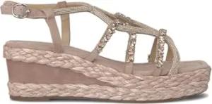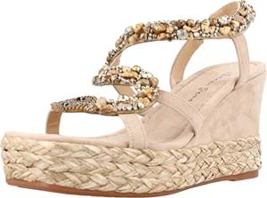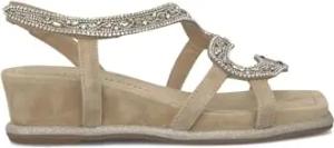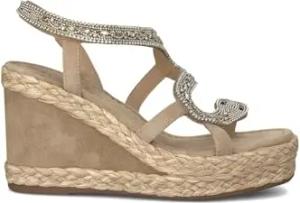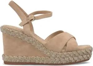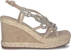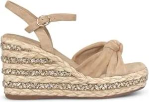 V251357 Suede Sand Elegante Sandalen für Damen mit Brillanten Mehrfarbig Hoher Keilabsatz, sand, 37 EU