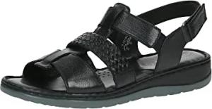Damen Sandalen flach aus Leder mit Klettverschluss, Schwarz (Black Comb), 38 EU