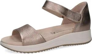 Damen Sandalen mit Keilabsatz aus Leder mit Klettverschluss, Beige (Taupe Metallic), 37 EU