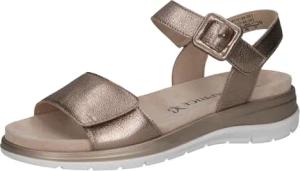 Damen Sandalen flach aus Leder mit Klettverschluss, Beige (Taupe Metallic), 38 EU