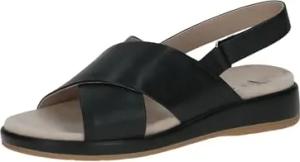 Damen Sandalen flach aus Leder mit Klettverschluss, Schwarz (Black Met.Comb), 39 EU