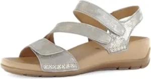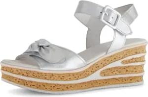 Damen Keilsandalen, Frauen Sandalen,Leichte Mehrweite (G),Keilabsatz,Wedge-Heel,bequem,flach,Silber(KDes/offwh),38.5 EU / 5.5 UK