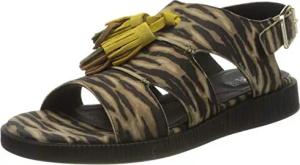 Damen D CAMALEI A Flat Sandal, Gun/Black, 37 EU