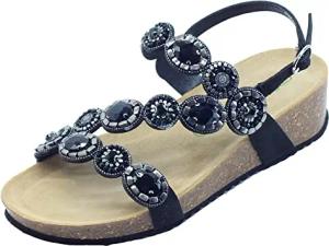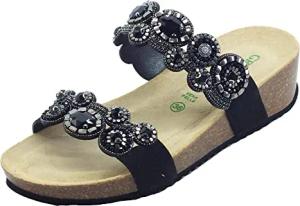 Grunland ANIN CB2531 Schwarz Elegante Damen Sandalen mit schwarzen Steinen Silber niedriger Keilabsatz, Schwarz , 36 EU