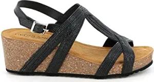 GRUNLAND ELOI SA2529 Schwarze Damensandalen Komfortkeil Lederband 38