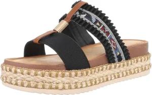 Ital Design Damenschuhe Sandalen & Sandaletten Keilsandaletten, BJ693-, Textil, Schwarz Beige, Gr. 38