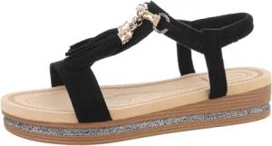 Ital Design Damenschuhe Sandalen & Sandaletten Riemchensandalen, G610-, Textil, Schwarz, Gr. 38
