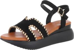 Ital Design Damenschuhe Sandalen & Sandaletten Keilsandaletten, 55-A15-, Kunstleder, Schwarz Beige, Gr. 36