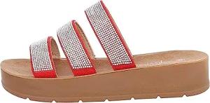 Ital Design Damenschuhe Sandalen & Sandaletten Plateausandaletten, DM420-, Kunstleder, Rot, Gr. 36