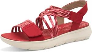 Coshy Damen Sandalen flach mit Klettverschluss Vegan, Rot (Red), 37 EU