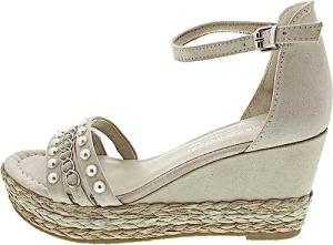 Damen Sandalen mit Keilabsatz mit Klettverschluss Elegant, Beige (Cream), 37 EU