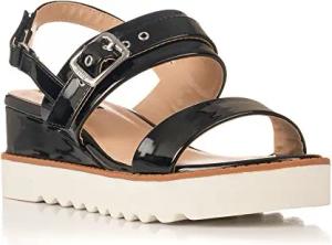 Damen Virginia Flache Plateau-Sandalen, schwarz Patent schwarz, 36 EU