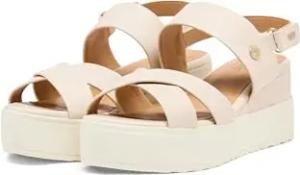 Damen Sandale Schnalle Kreuzriemen Holzoptik 1424-808, Größe:42 EU, Farbe:Weiß