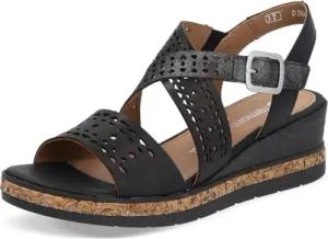 Damen Keilsandalen D6454, Frauen Sandalen,Sommerschuhe,Freizeitschuhe,offene Schuhe,Strandschuhe,Keilsandaletten,hoch,schwarz Kombi (00),38 EU