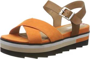 Damen Sandalen flach Bequem Sommer, Mehrfarbig (Orange Comb), 41 EU