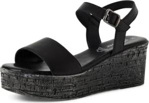 Damen Sandalen mit Keilabsatz mit Schnalle Bequem, Schwarz (Black Comb.), 37 EU