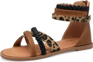 Mädchen Sandalen flach mit Reißverschluss Geschlossene Ferse, Mehrfarbig (Leopard Comb.), 39 EU