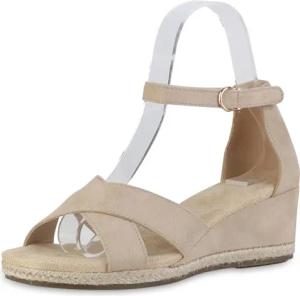 Damen Keilsandaletten Keilabsatz Bast Trendy Schuhe 215189 Beige Velours 37