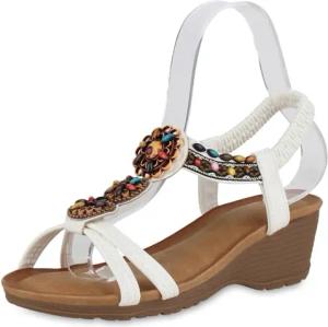 Damen Keilsandaletten Keilabsatz Zierperlen Trendy Schuhe 215692 Weiss 37