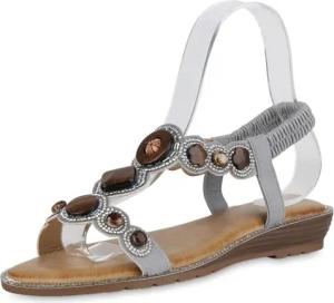 Damen Riemchensandalen Flach Strass Trendy Schuhe 215766 Grau 36