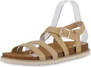 Damen Übergrößen Riemchensandalen Flach Profilsohle Trendy Schuhe 215785 Beige 42
