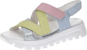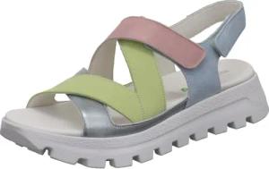 Sandale H-Nele in Pastell Farben Grün und Rosa mit markanter Laufsohle und Echtleder. Silber/bunt Gr. 40