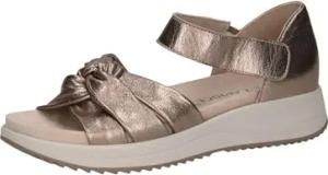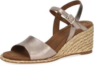 Damen Sandalen mit Keilabsatz aus Leder mit Klettverschluss, Beige (Taupe Metallic), 37 EU