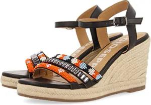 Tigard Damen-Sandalen, Weiß und Naturfarben, hoher Keilabsatz, geflochten, Schwarz, 41 EU