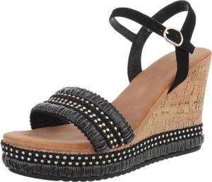 Ital Design Damenschuhe Sandalen & Sandaletten Keilsandaletten, 55-A16-, Textil, Schwarz, Gr. 38