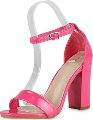 Damen High Heels Sandaletten Lederoptik Riemchensandaletten Party Schuhe Elegante Abendschuhe Blockabsatz Tanzschuhe 203984 Fuchsia Lack 36