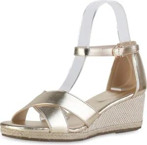 Damen Keilsandaletten Keilabsatz Bast Trendy Schuhe 215185 Gold 37