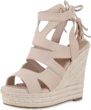Damen Keilsandaletten Keilabsatz Strass Trendy Schuhe 214482 Beige 40