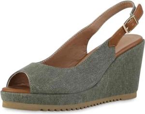 Damen Keilsandaletten Keilabsatz Bast Trendy Schuhe 216178 Olivgrün 37