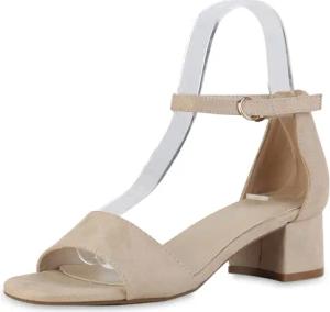 Damen Klassische Sandaletten Blockabsatz Basic Klassisch Schuhe 215209 Beige Velours 37