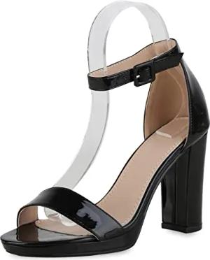 Damen Riemchensandaletten Stiletto Lack Party Schuhe 216538 Schwarz Lack 36
