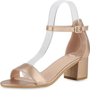 Damen Klassische Sandaletten Blockabsatz Schuhe Leder-Optik Abendschuhe Elegante Mid Heels Riemchenschuhe 211199 Rose Gold 37